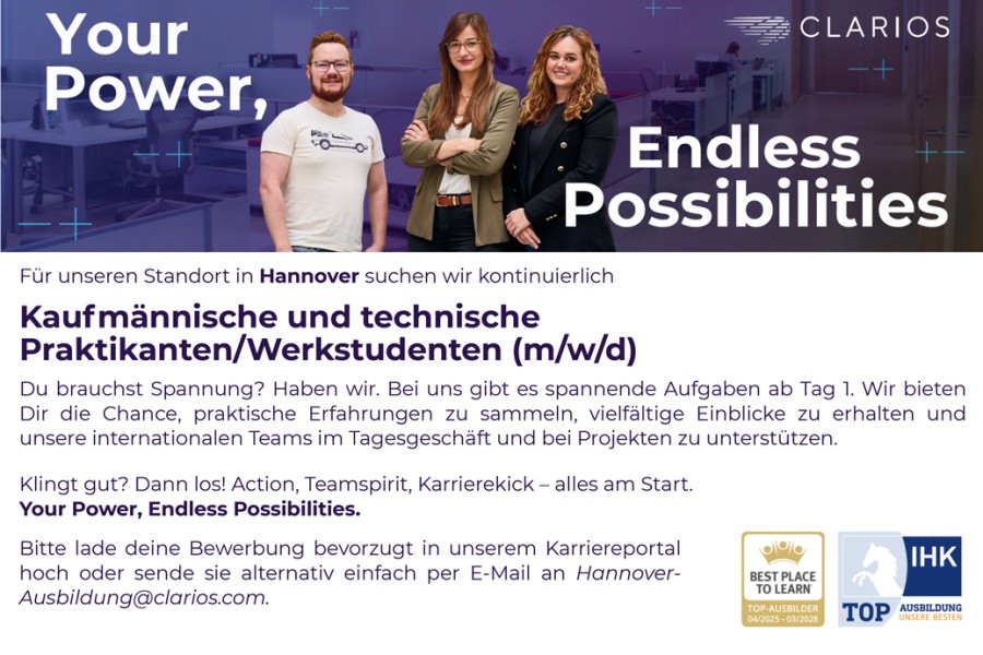 Bei Clarios erwarten Dich spannende Aufgaben in einem internationalen Konzernumfeld und jede Menge Möglichkeiten, Deine Ideen einzubringen. Ganz nach unserem Motto „Your Power, Endless Possibilities“ setzen wir auf ein Arbeitsumfeld, das unterschiedliche Perspektiven fördert und individuellen Stärken Raum gibt.